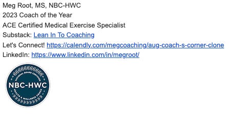 (1) Set up your professional signature line then send me an email at megrootcoaching@gmail.com with the word “done!” I’ll send you a high five back.